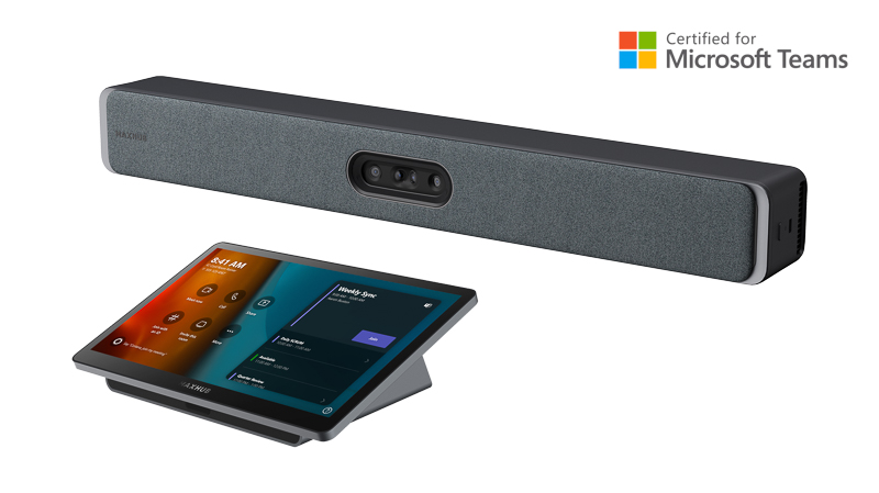 XBar kit composto da videobar V50 con touchpanel AP30, certificata Microsoft Teams.